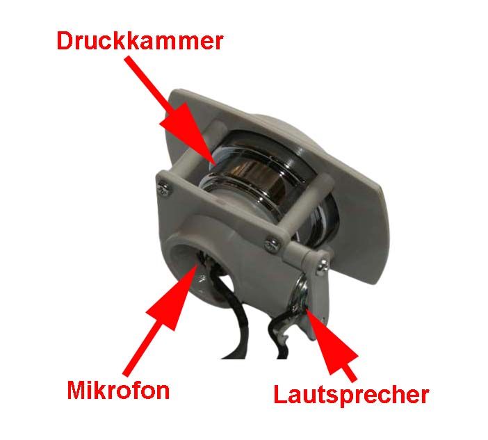 - Druckkammer. In diesem kleine Volumen wird der Schalldruckpegel präzise geregelt.